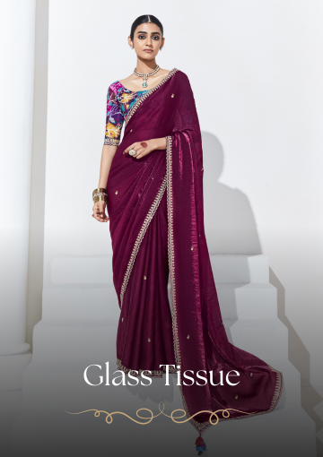 Wine Plum Metallic Fandy Satin Saree with Cutdana & Zari Work