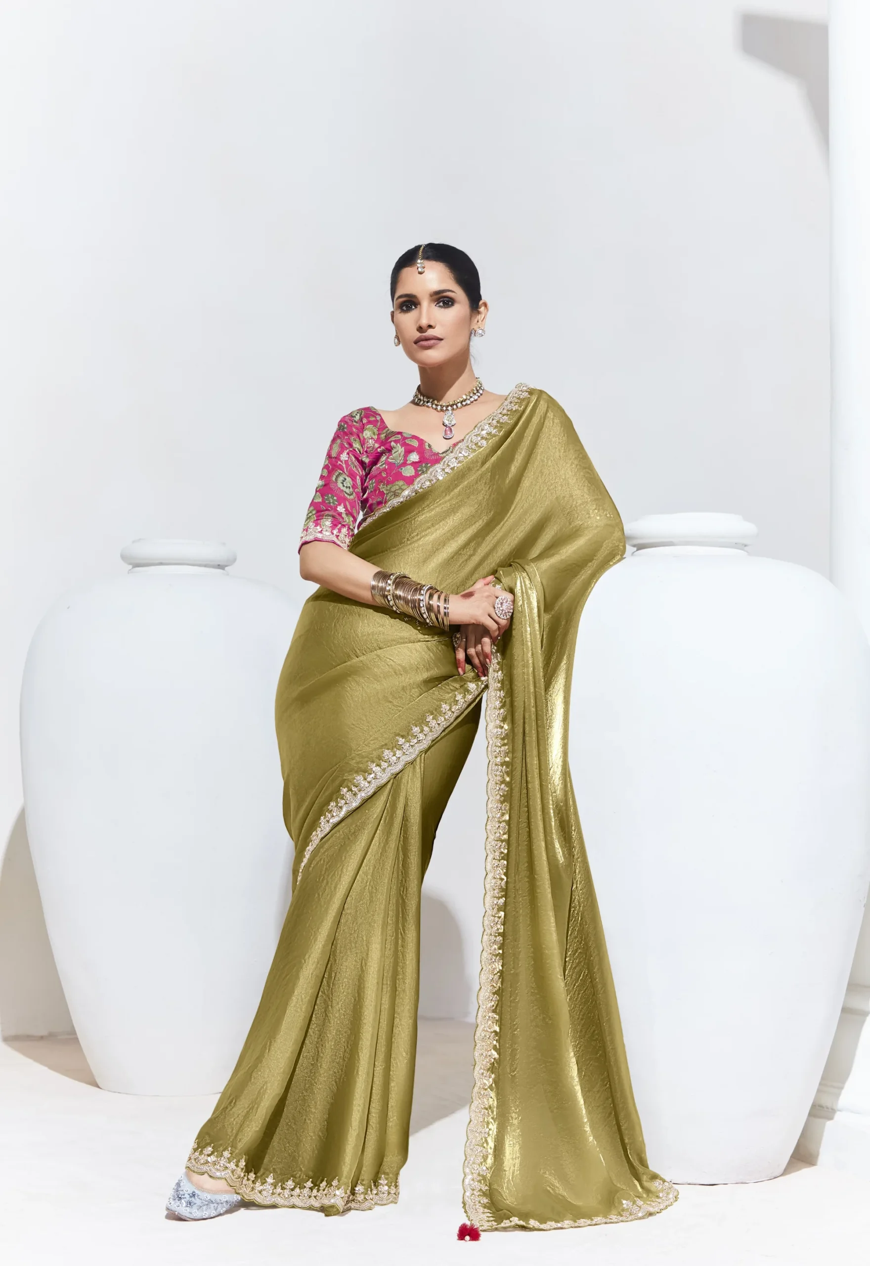 A luminous saree for standout celebrations.