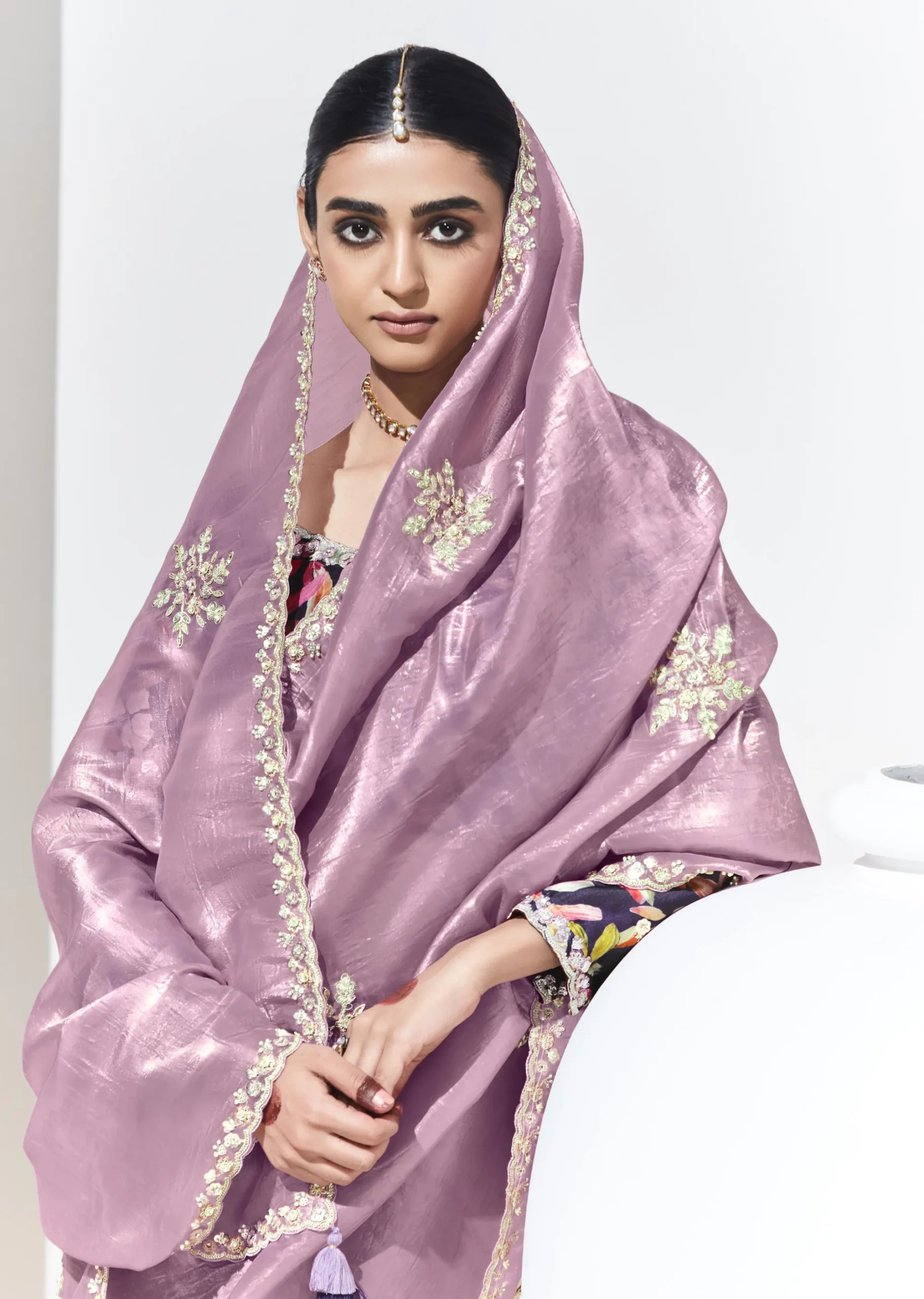 Glass Tissue Embroidered Saree – Soft Blush Elegance
