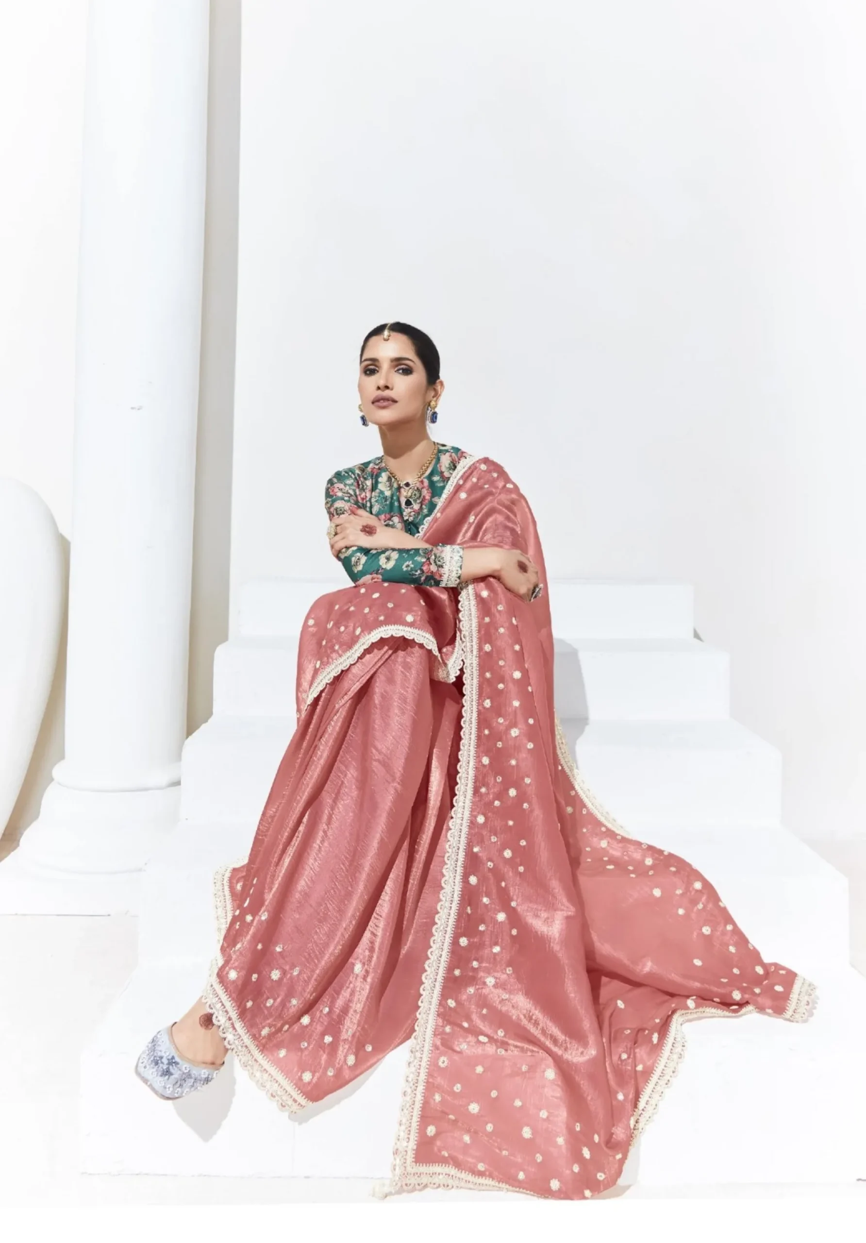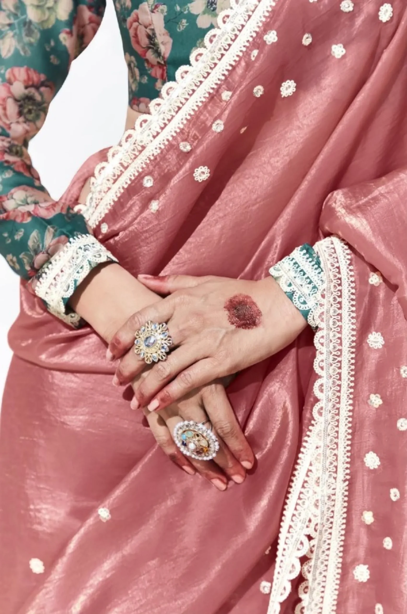 Glass Tissue Embroidered Saree – Rosewood Elegance